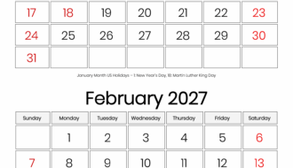 February 2027 Calendar – Free Printable Template About February Month : The month of February marks the end of winter in the Northern Hemisphere and the beginning of summer in the Southern Hemisphere. Februa, the Roman ceremony of purification, inspired its name. The Gregorian calendar’s second month, February, has 29 days in leap years and …