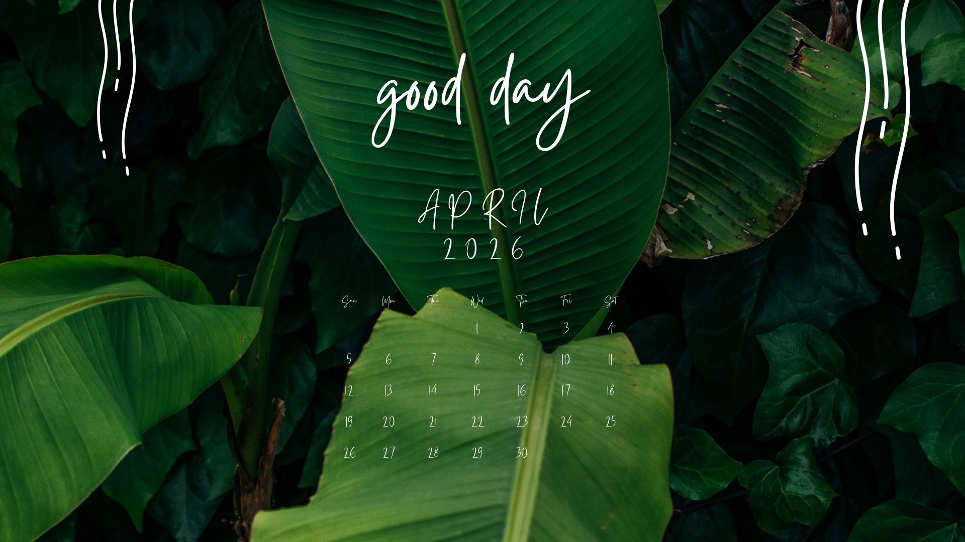 Green and White Nature Cold Banana Leaf Good Day Quotes April 2026 Wallpaper