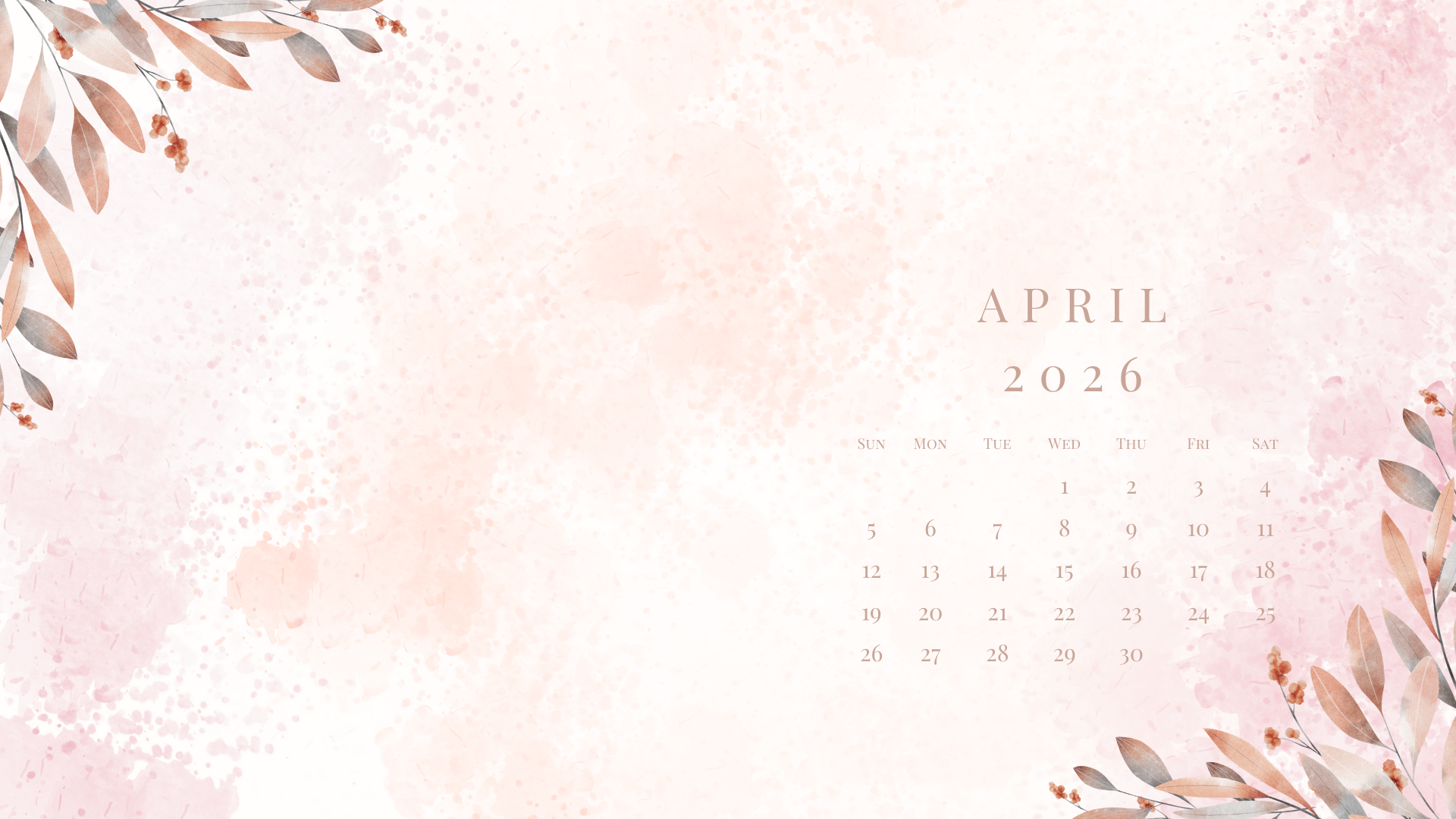 Pink Illustrative Watercolor Flowers April 2026 Desktop Wallpaper