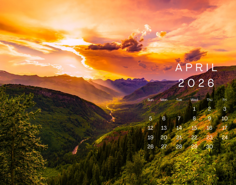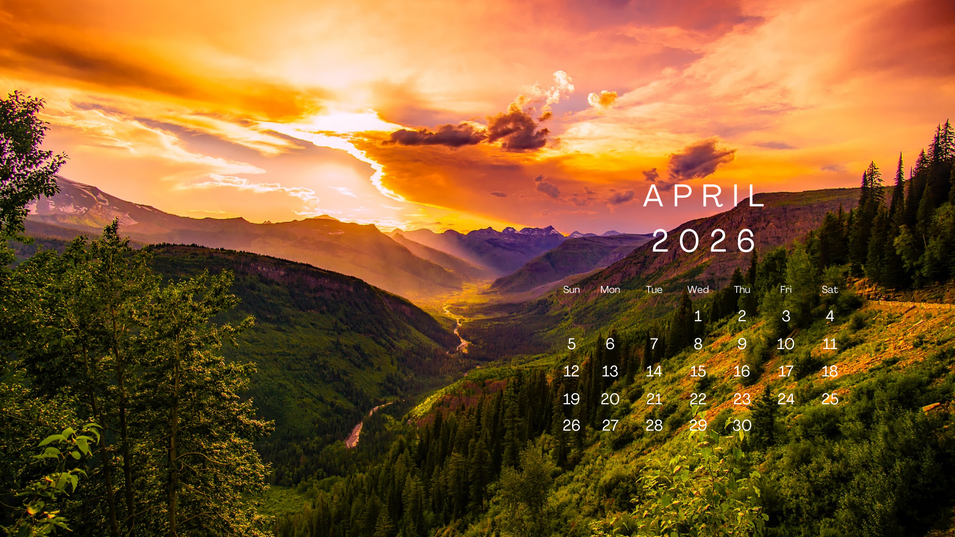 Sunset Mountain Landscape April 2026 Desktop Calendar Wallpaper