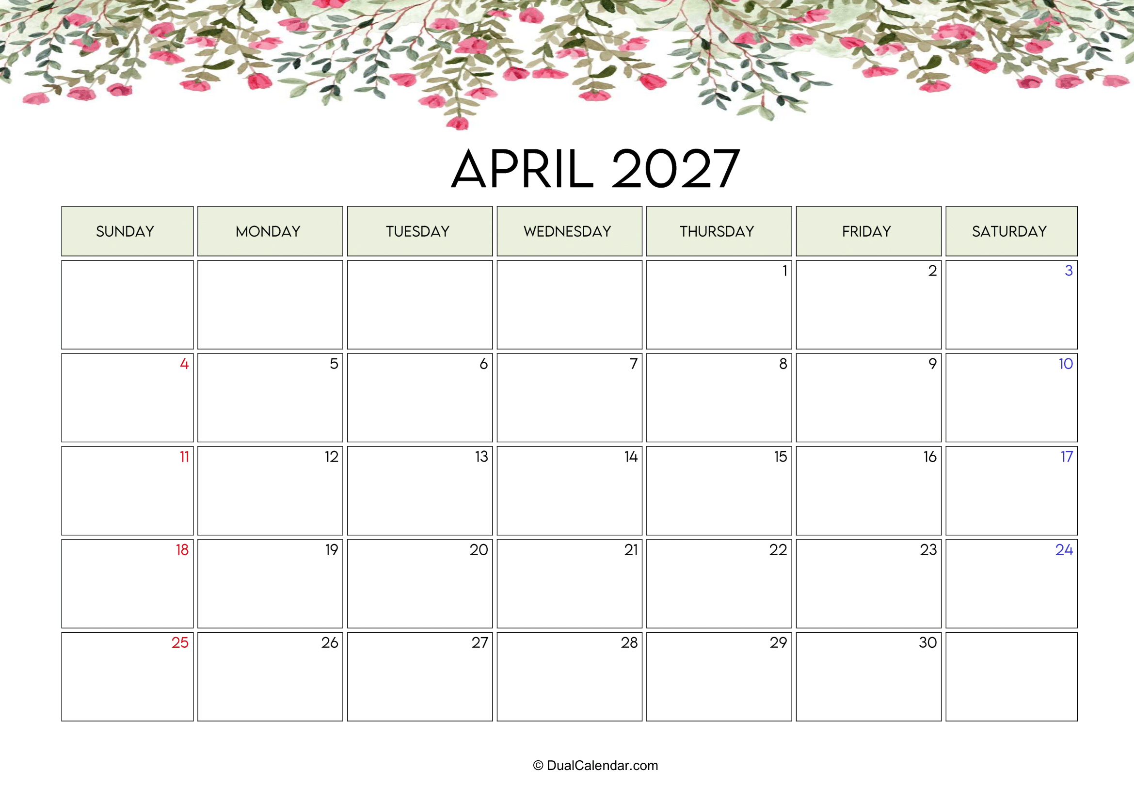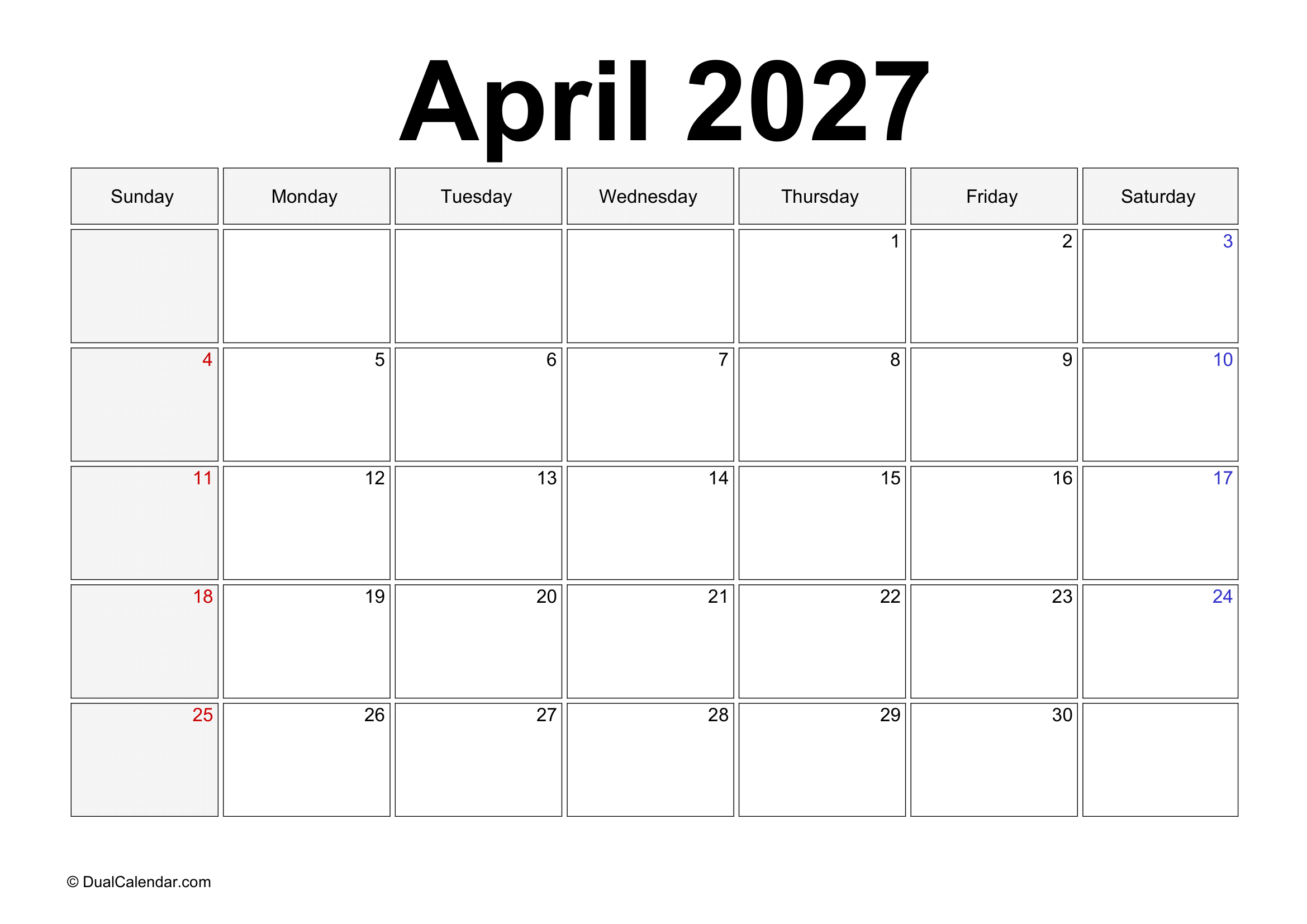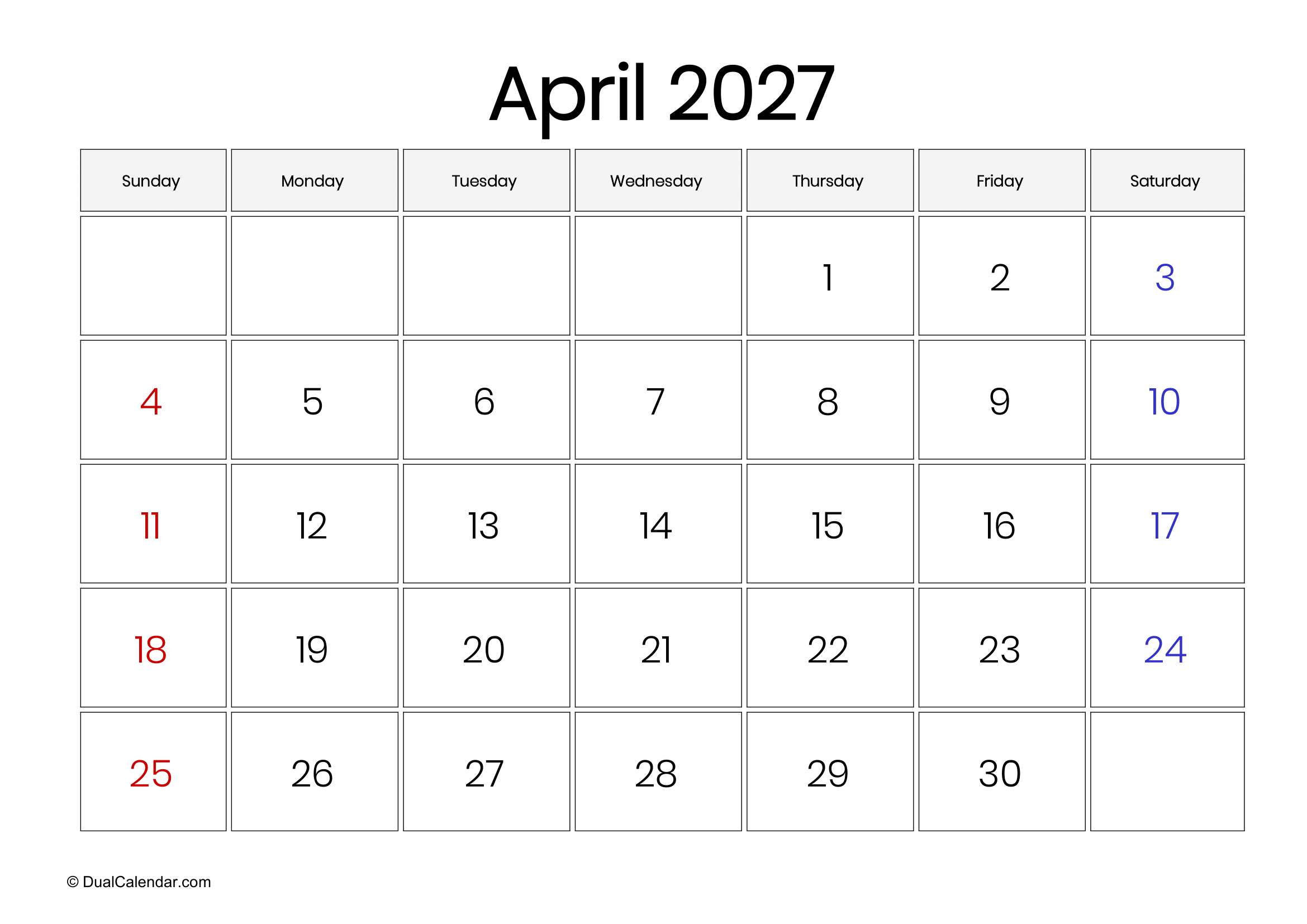 April 2027 Calendar – Free Printable Template