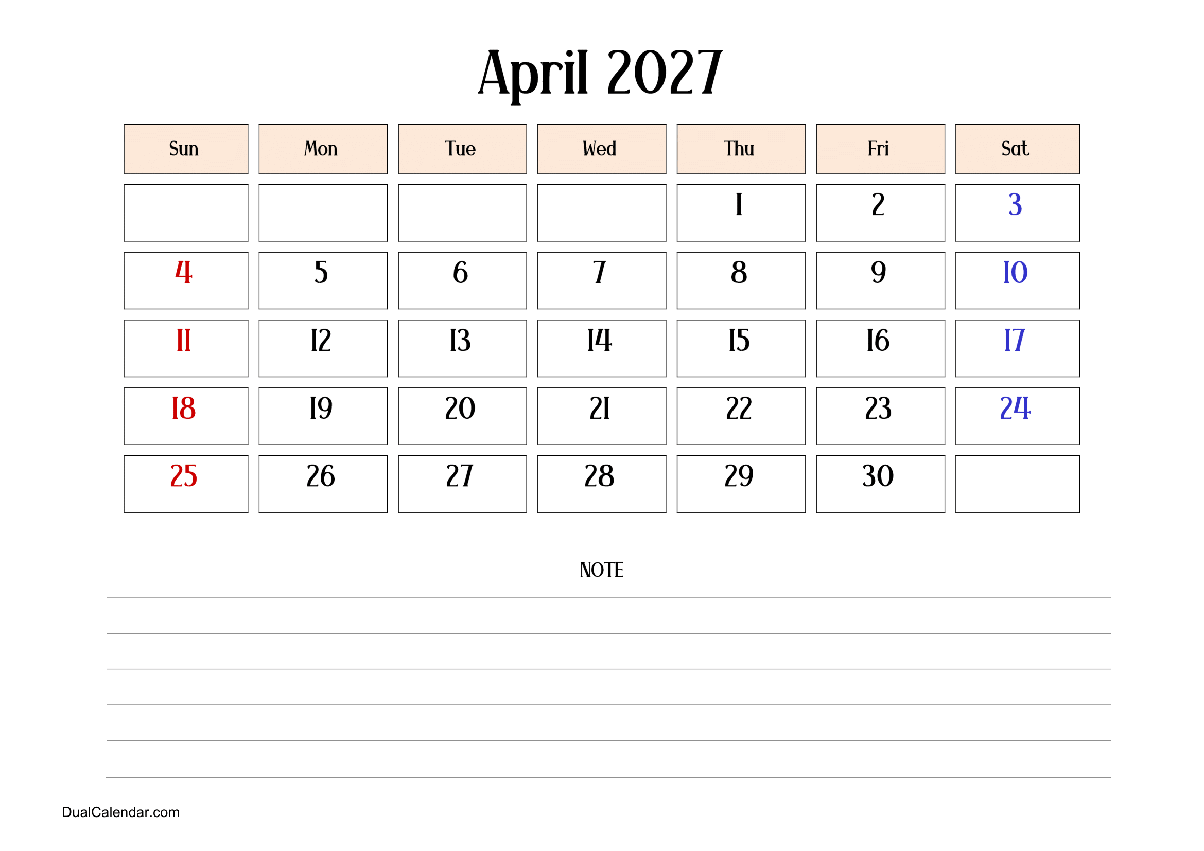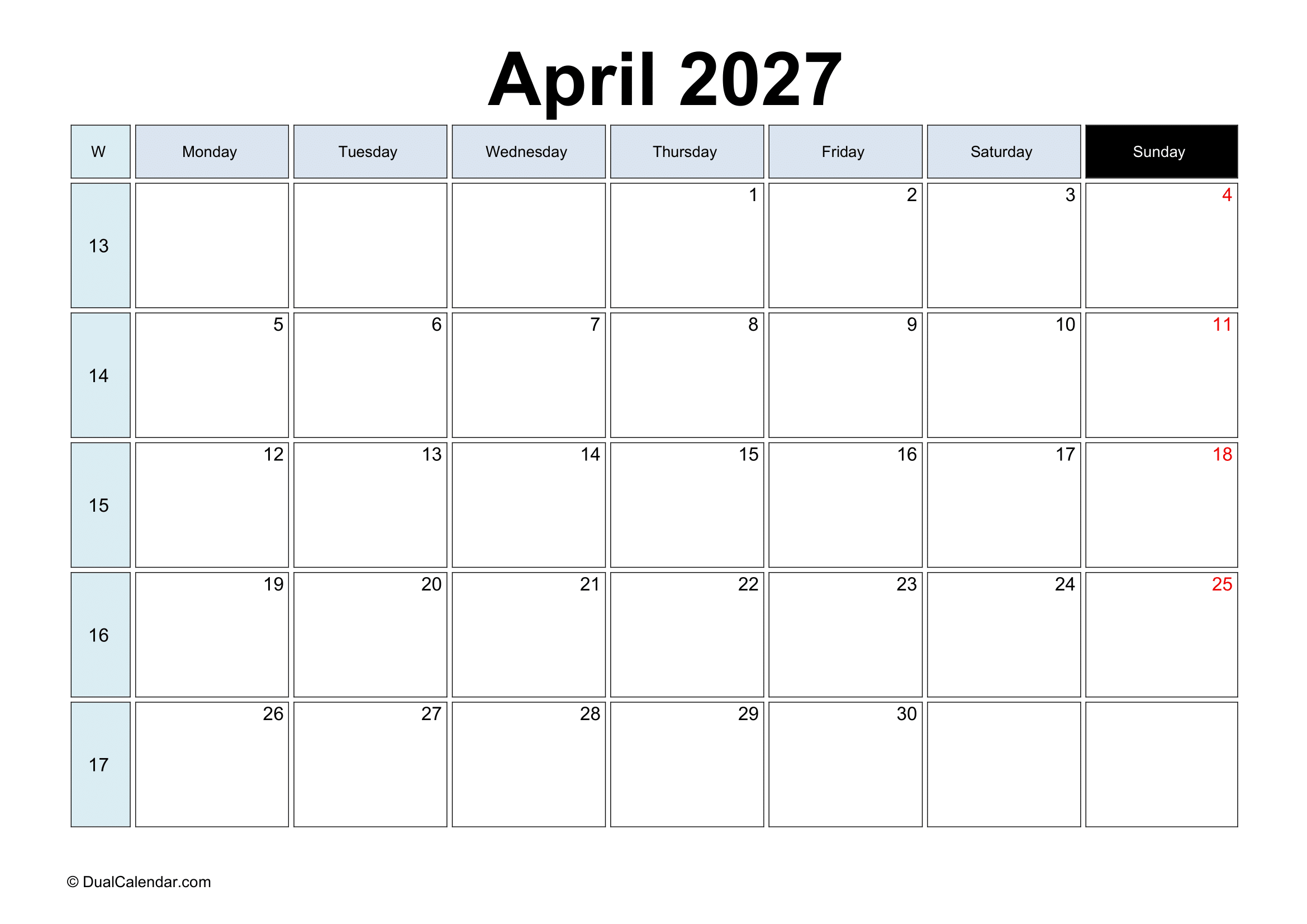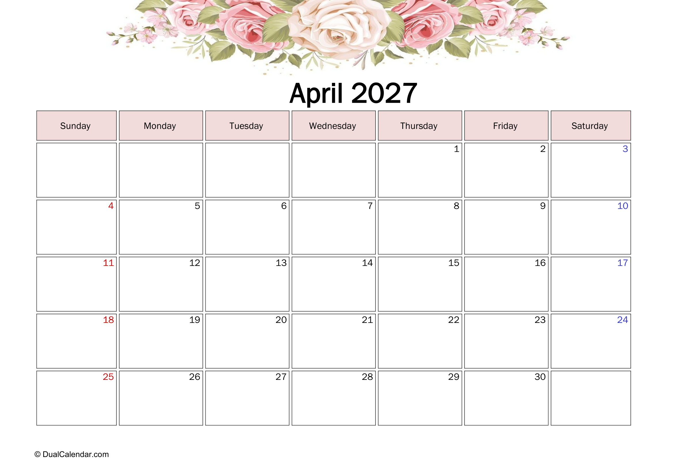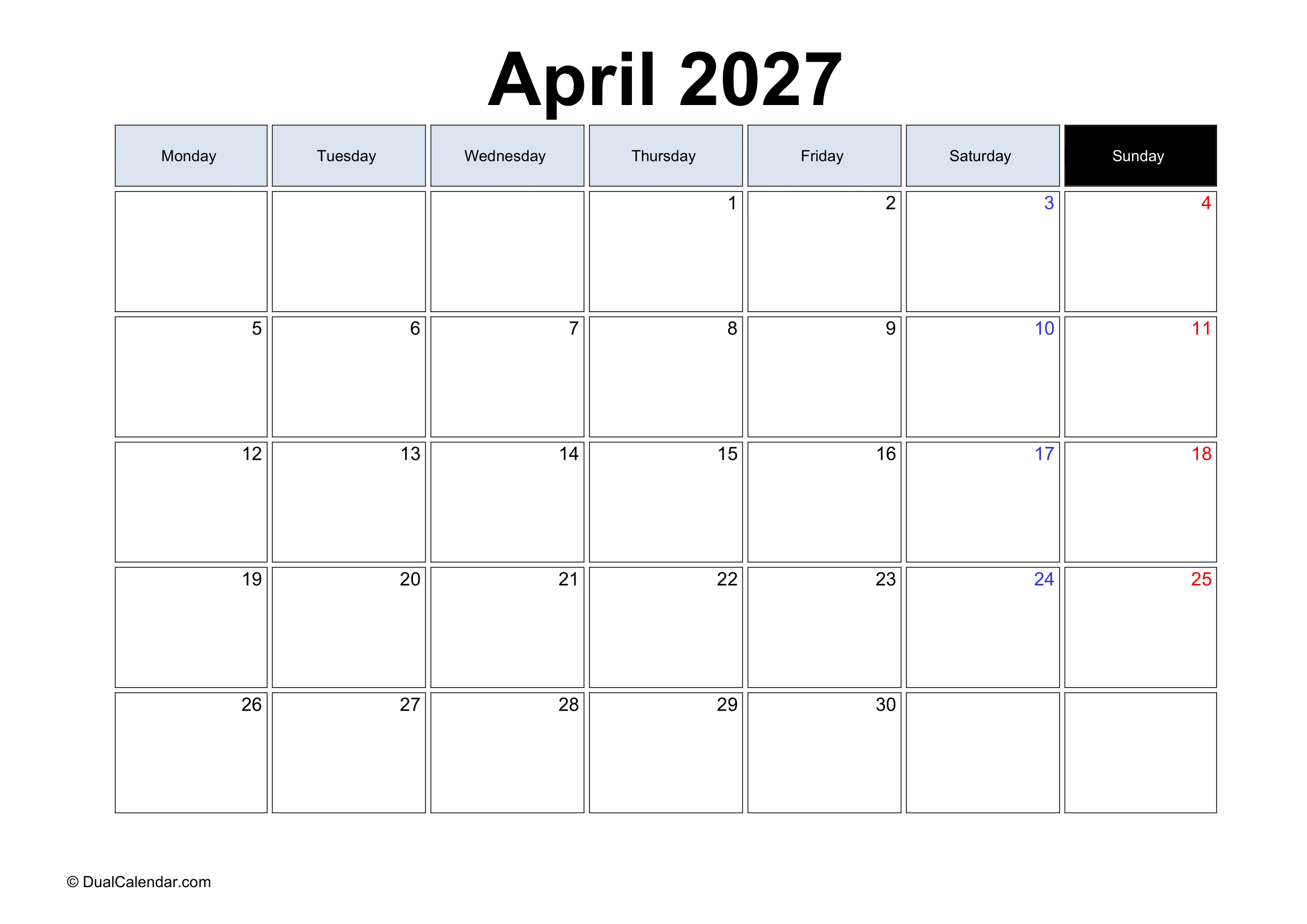 April 2027 Calendar – Free Printable Template