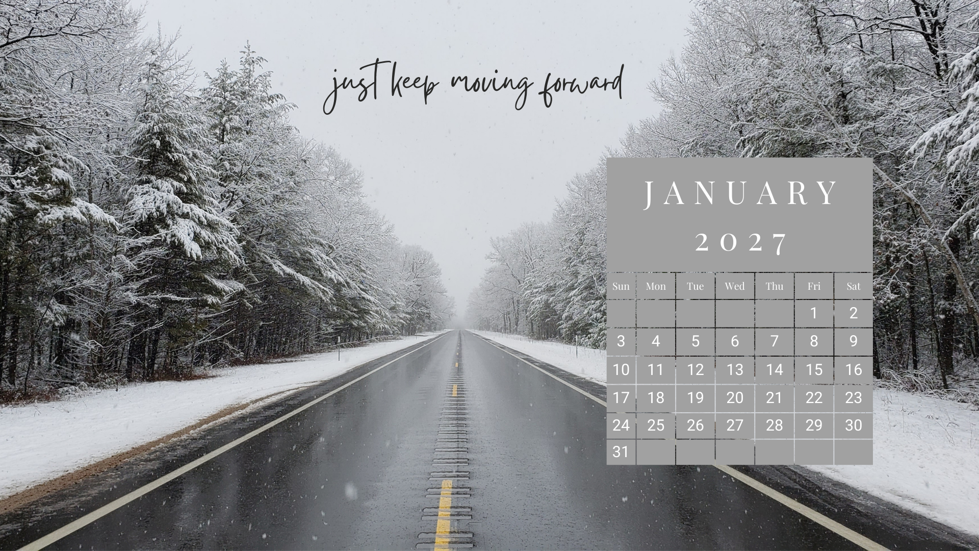 Start New Year 2027 with a positive mindset through the January 2027 desktop wallpaper, designed to inspire calmness, focus, and motivation. The peaceful winter mood combined with soft visuals and meaningful words helps set the right mindset for the days ahead. Uplifting quotes like “a good day is coming,” “just keep moving forward,” and “take a moment to breathe” have been used in this wallpaper to remind you to stay patient and confident. This wallpaper is perfect for both work and home screens, helping you begin January 2027 with clarity, hope, and fresh energy. A simple daily reminder that progress matters and better days are always ahead.