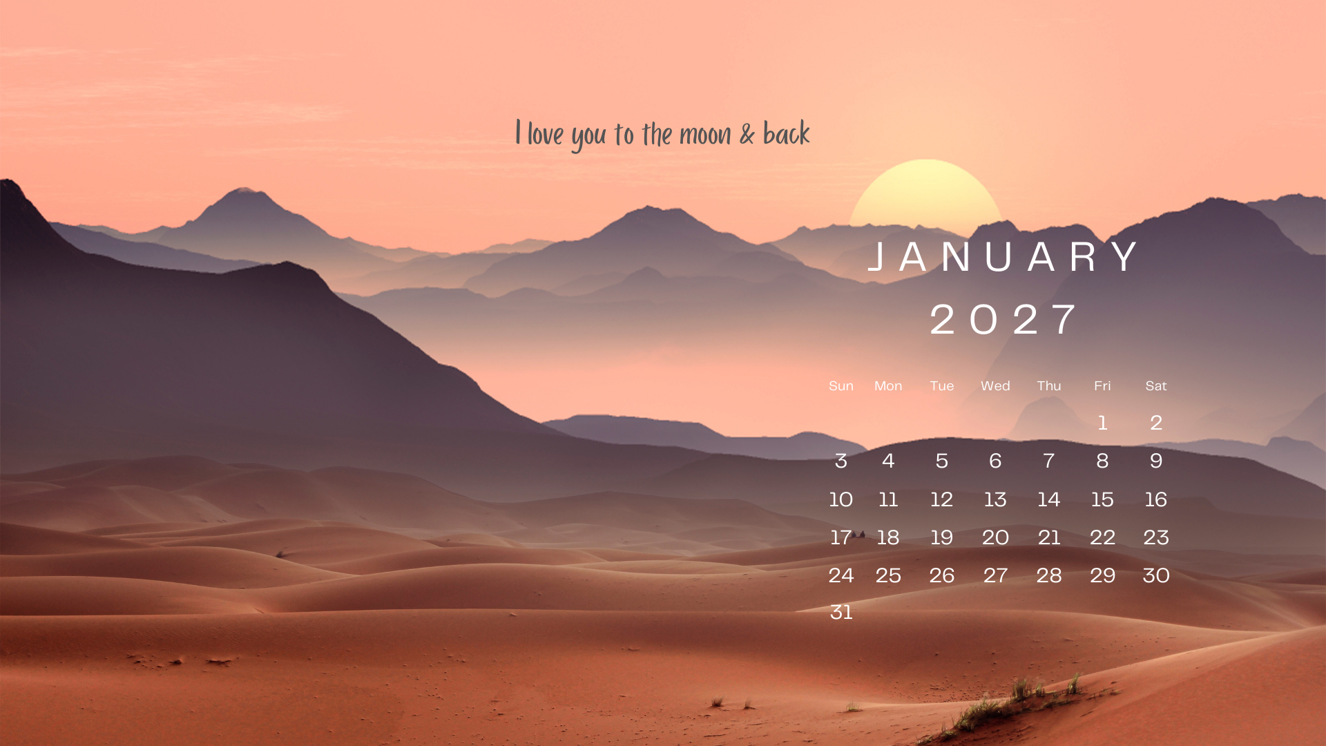 I Love You to Moon & Back January 2027 Desktop Calendar Wallpaper
