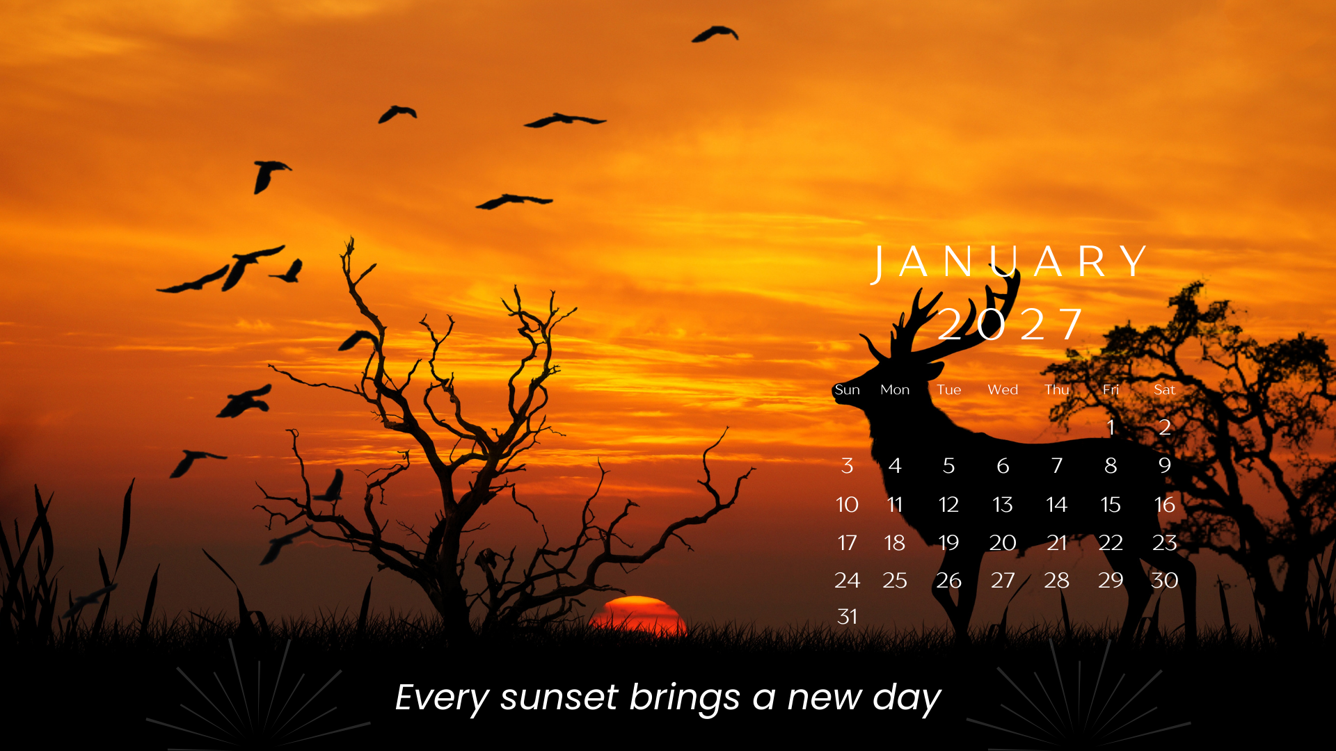 Orange Black Photo Sunset Quotes January 2027 Desktop Wallpaper