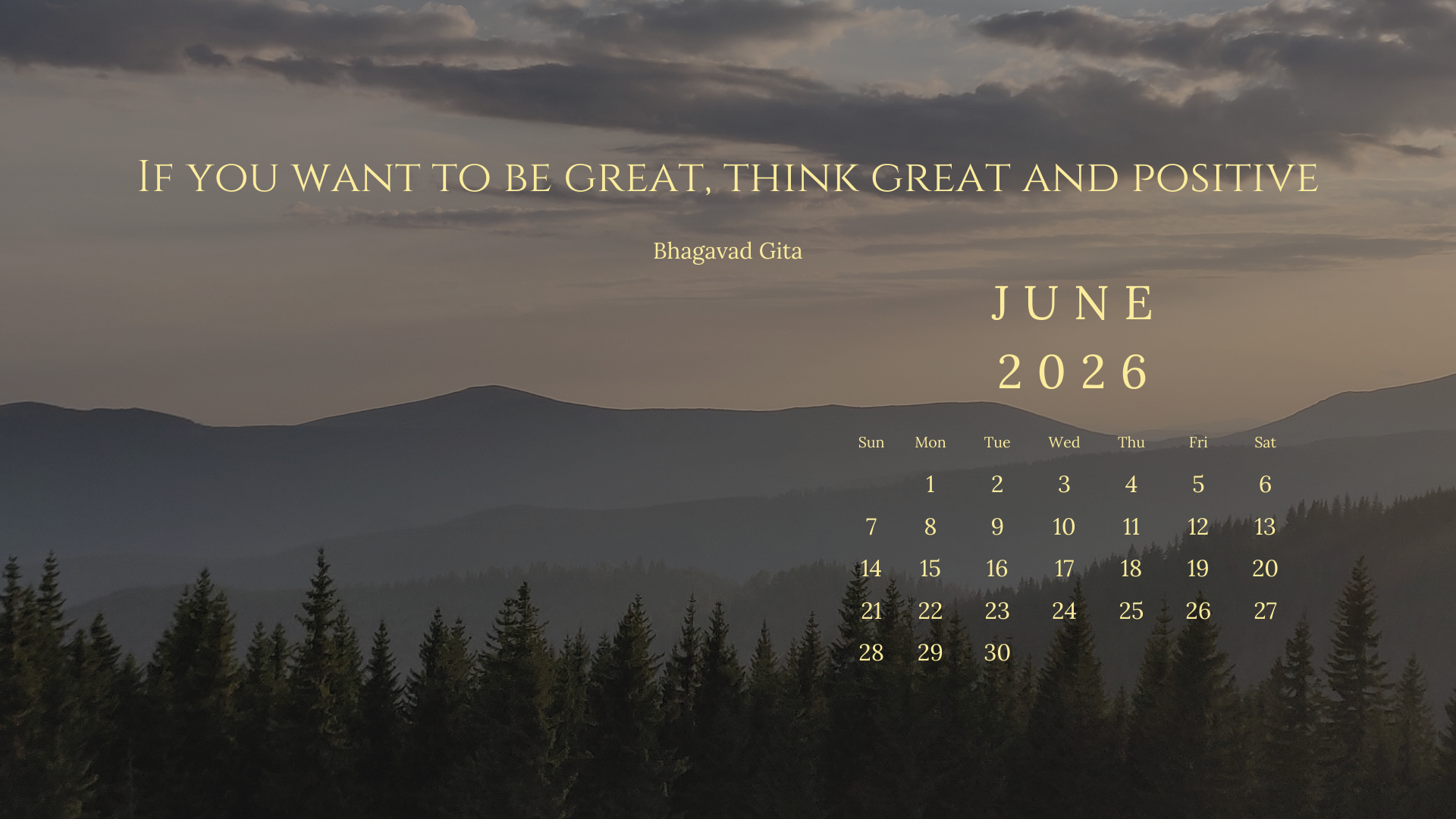 Bhagavad Gita Quote June 2026 Desktop Wallpaper in Yellow Photocentric Style