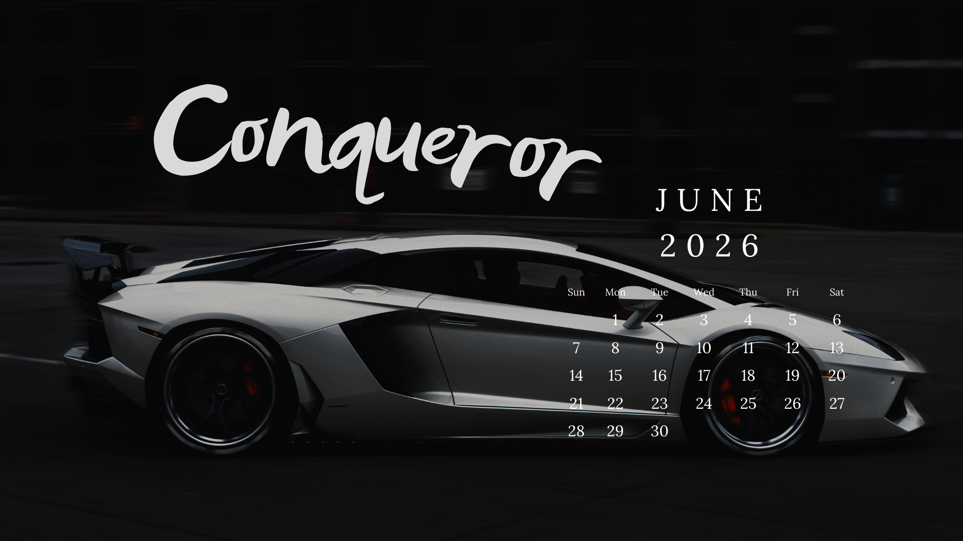 Black and White Sports Car June 2026 Desktop Calendar Wallpaper