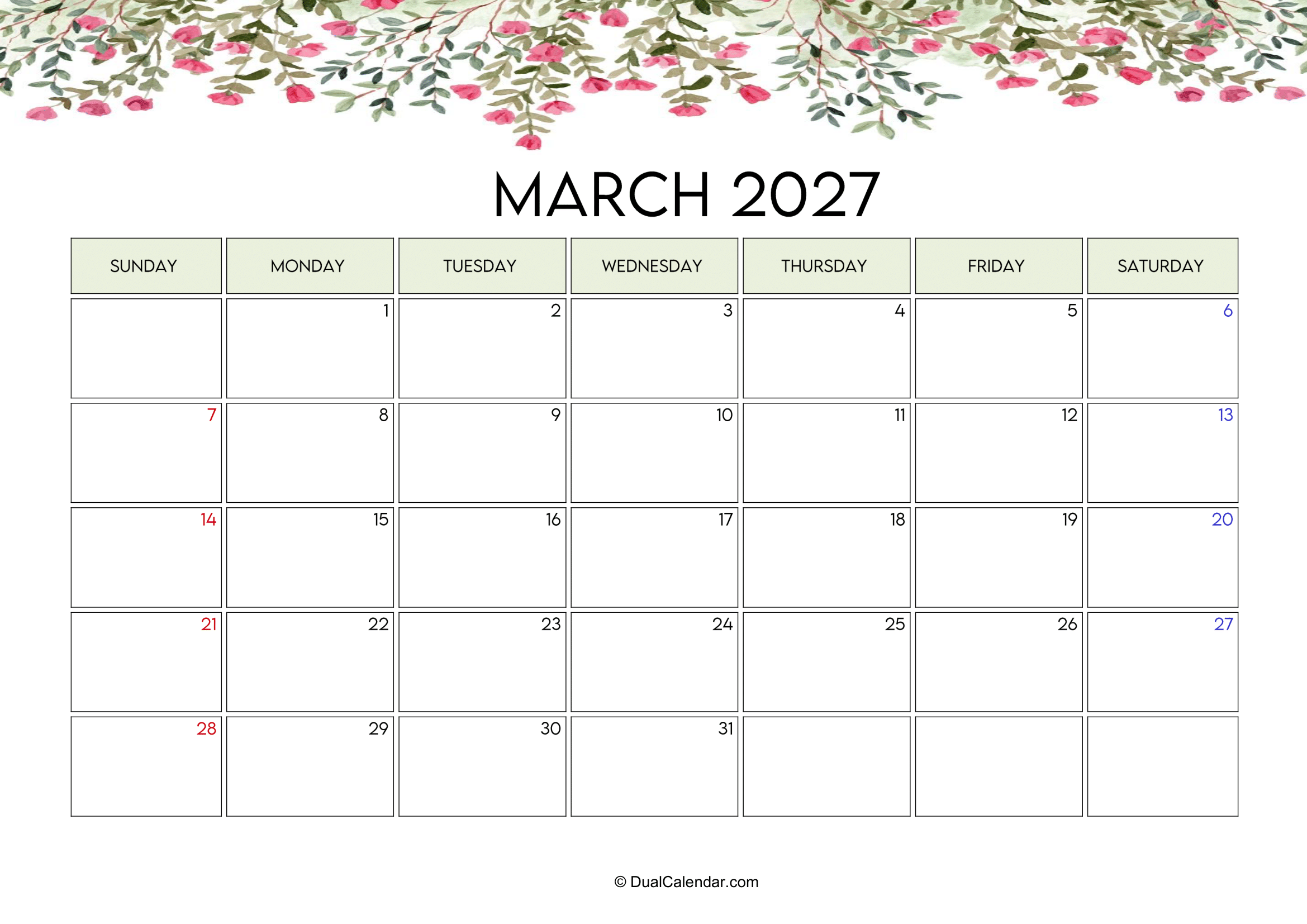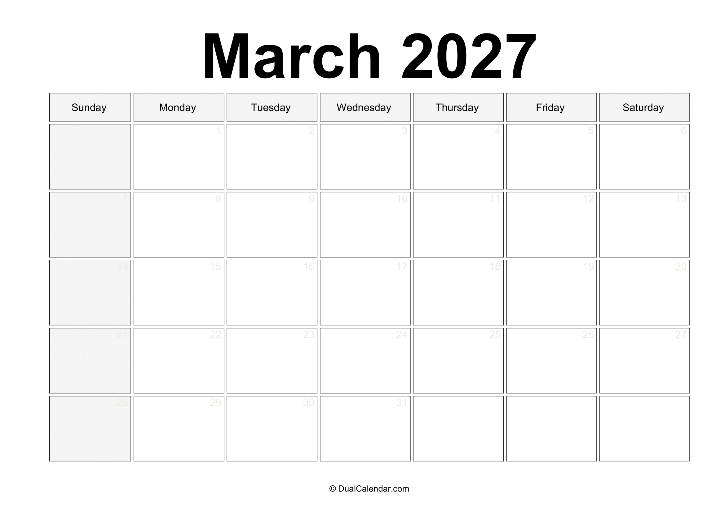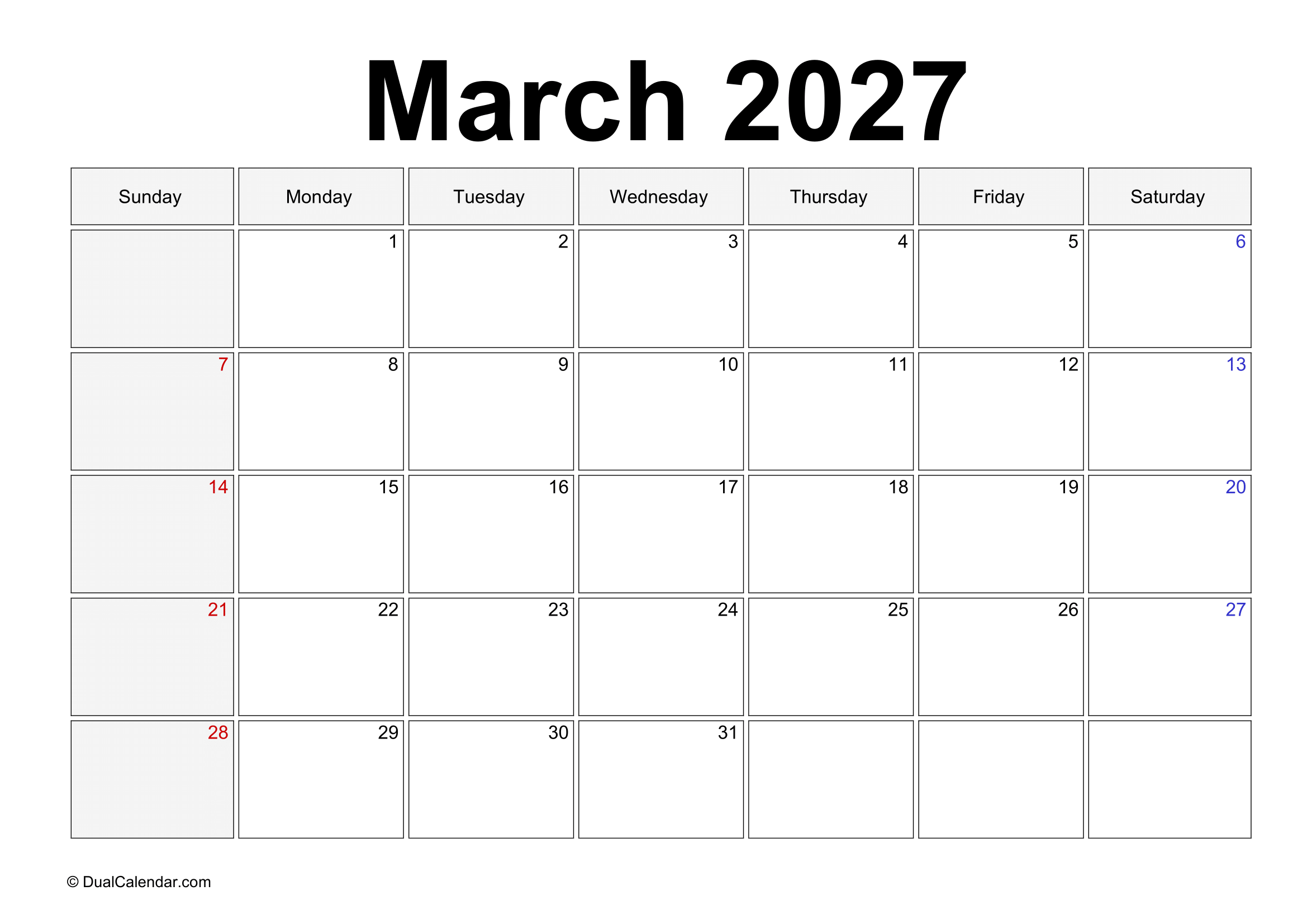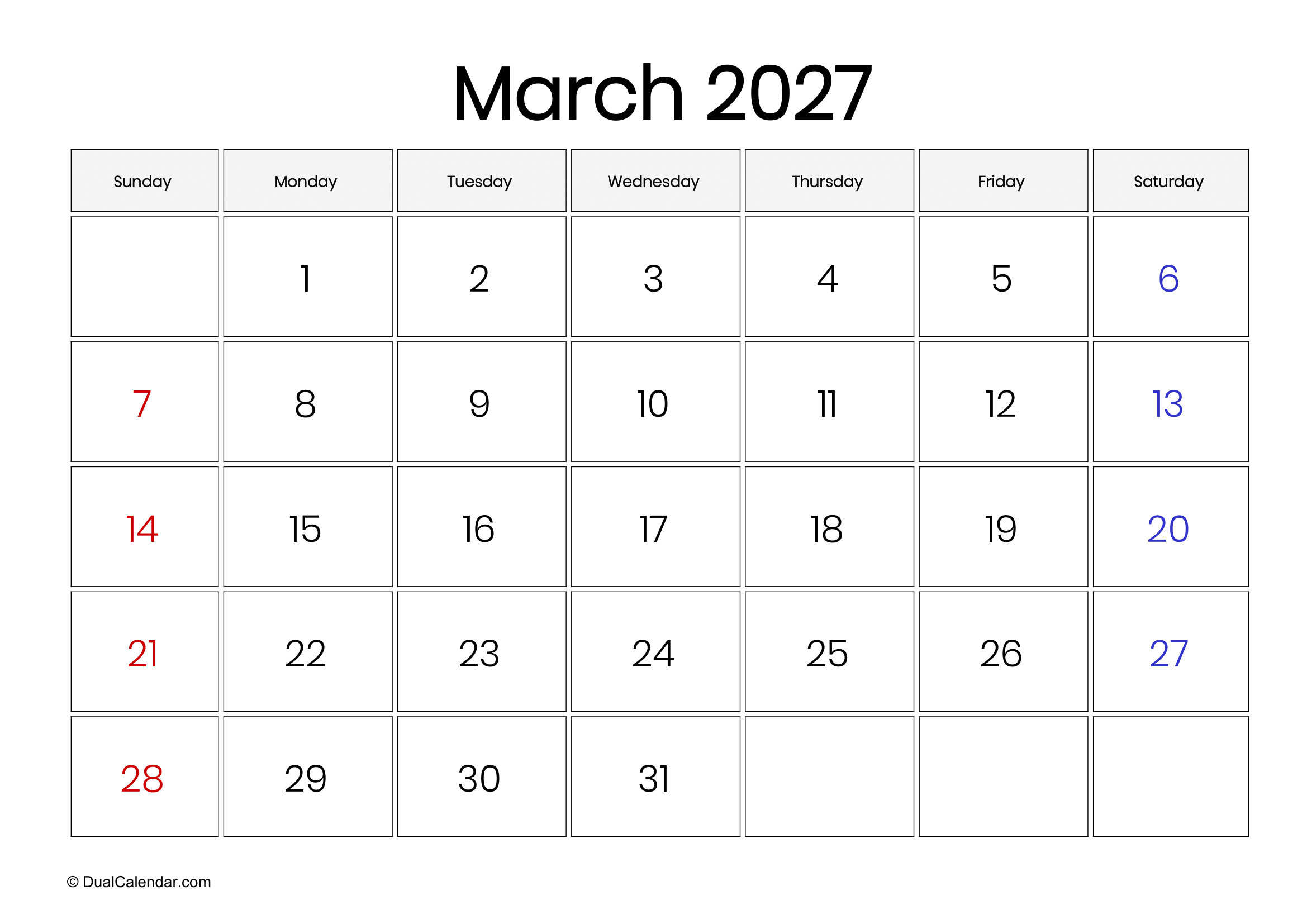 March 2027 Calendar – Free Printable Template