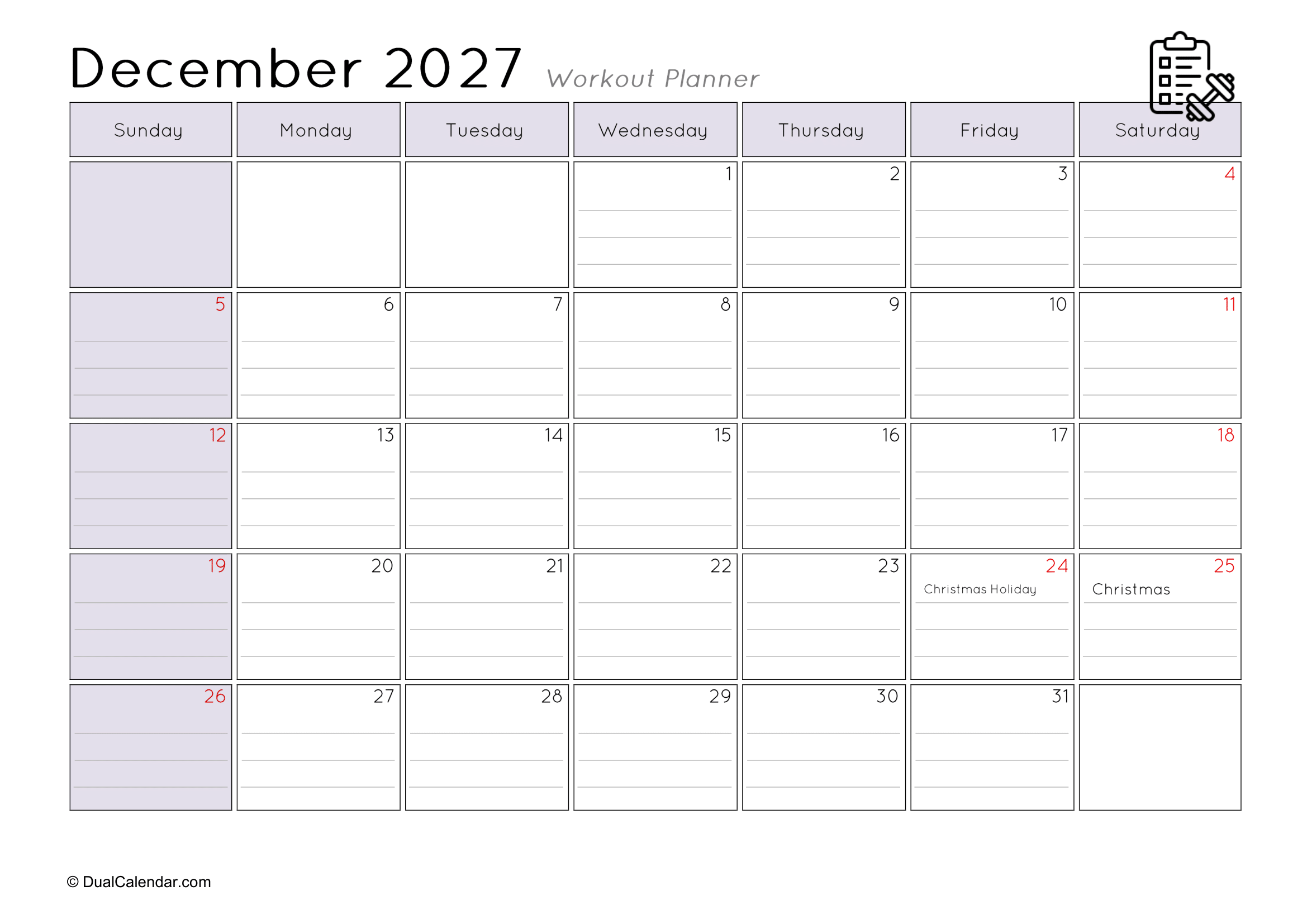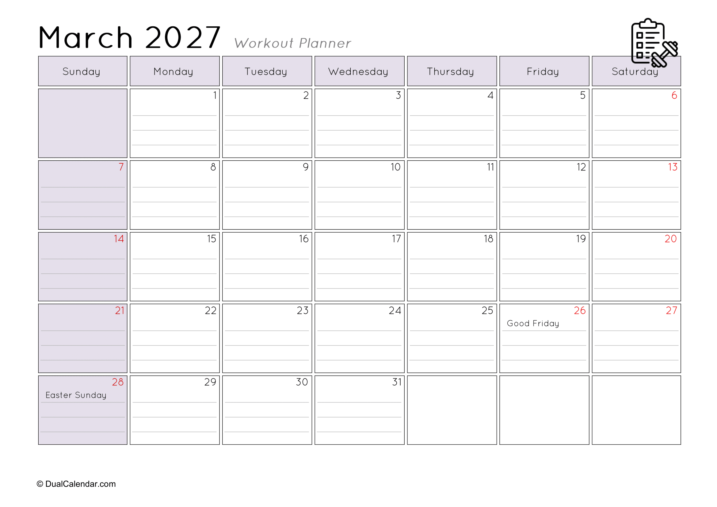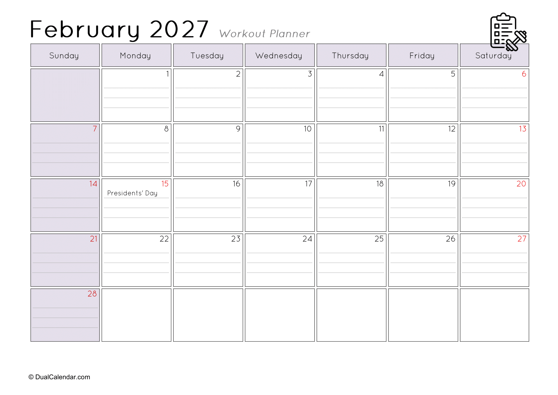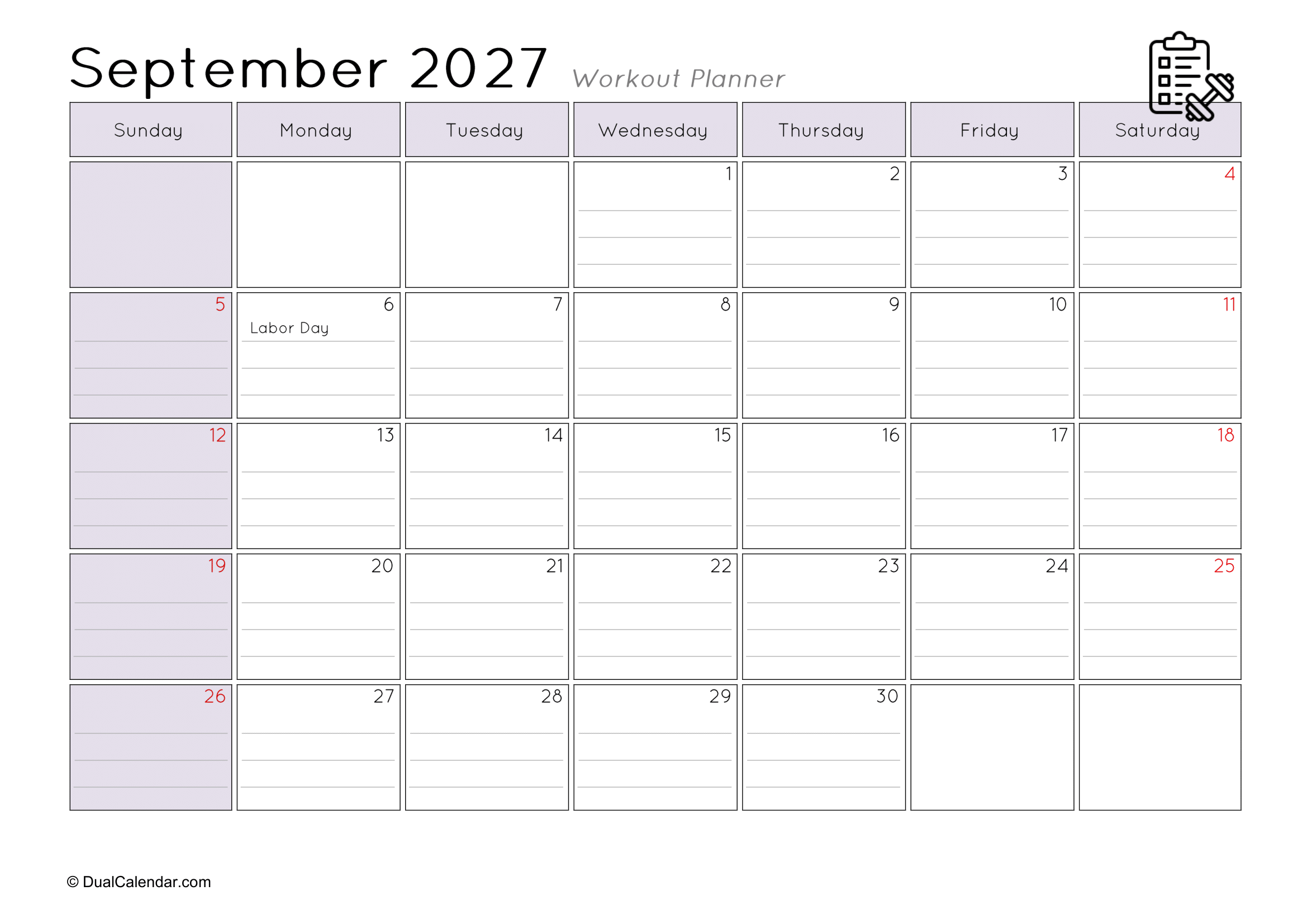 I found it very difficult to keep track of the workouts I did at the gym each day, such as remembering that today is Monday and I worked on chest exercises.The main challenge was where to note everything down. I even searched on Google for a monthly workout planner, but couldn’t find anything suitable template. After that, I decided to create my own templates so others wouldn’t face the same problem. Here, I have designed monthly workout planners for the year 2027, making it easy to track gym schedules, yoga sessions, jogging, or any other fitness activities.