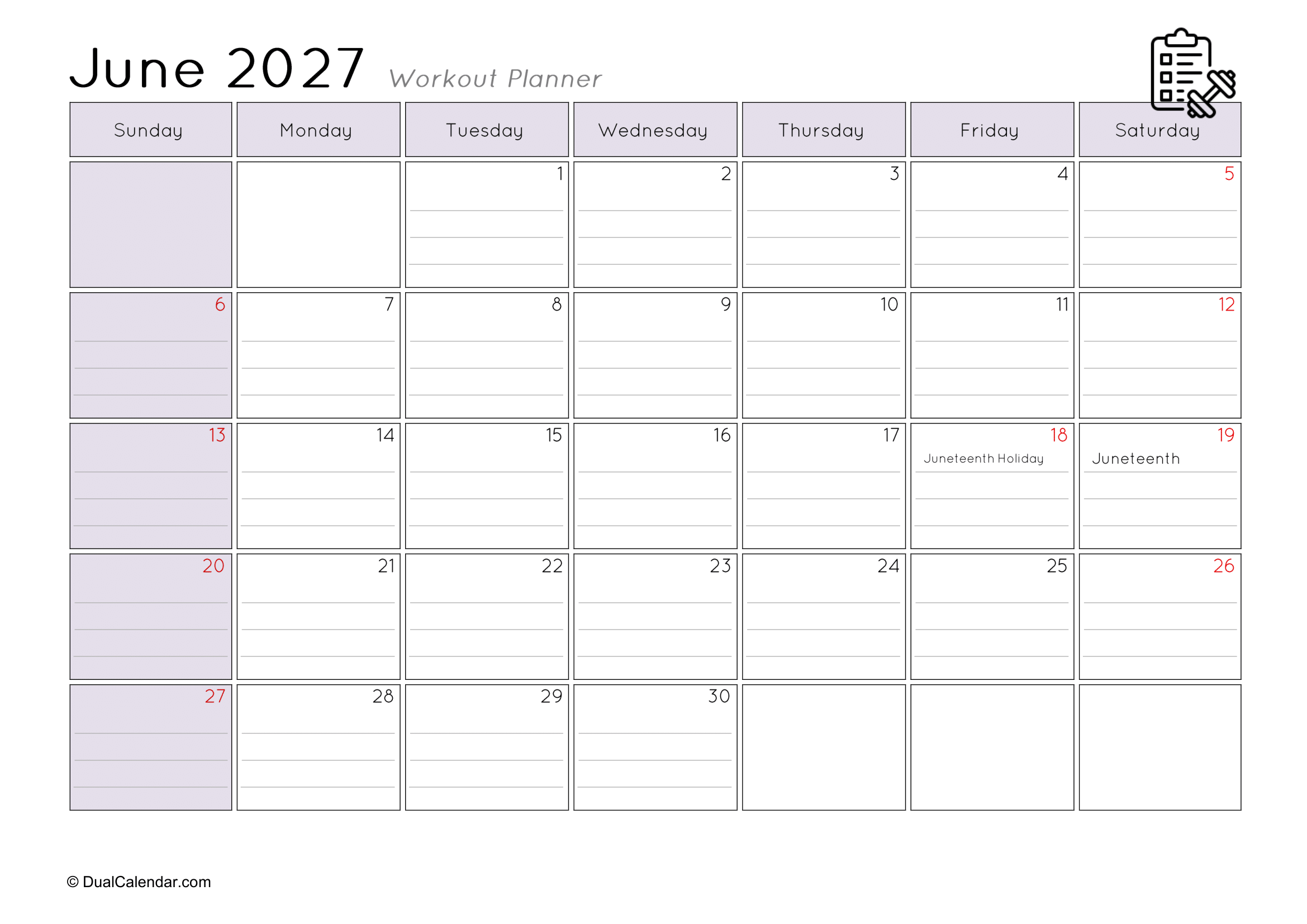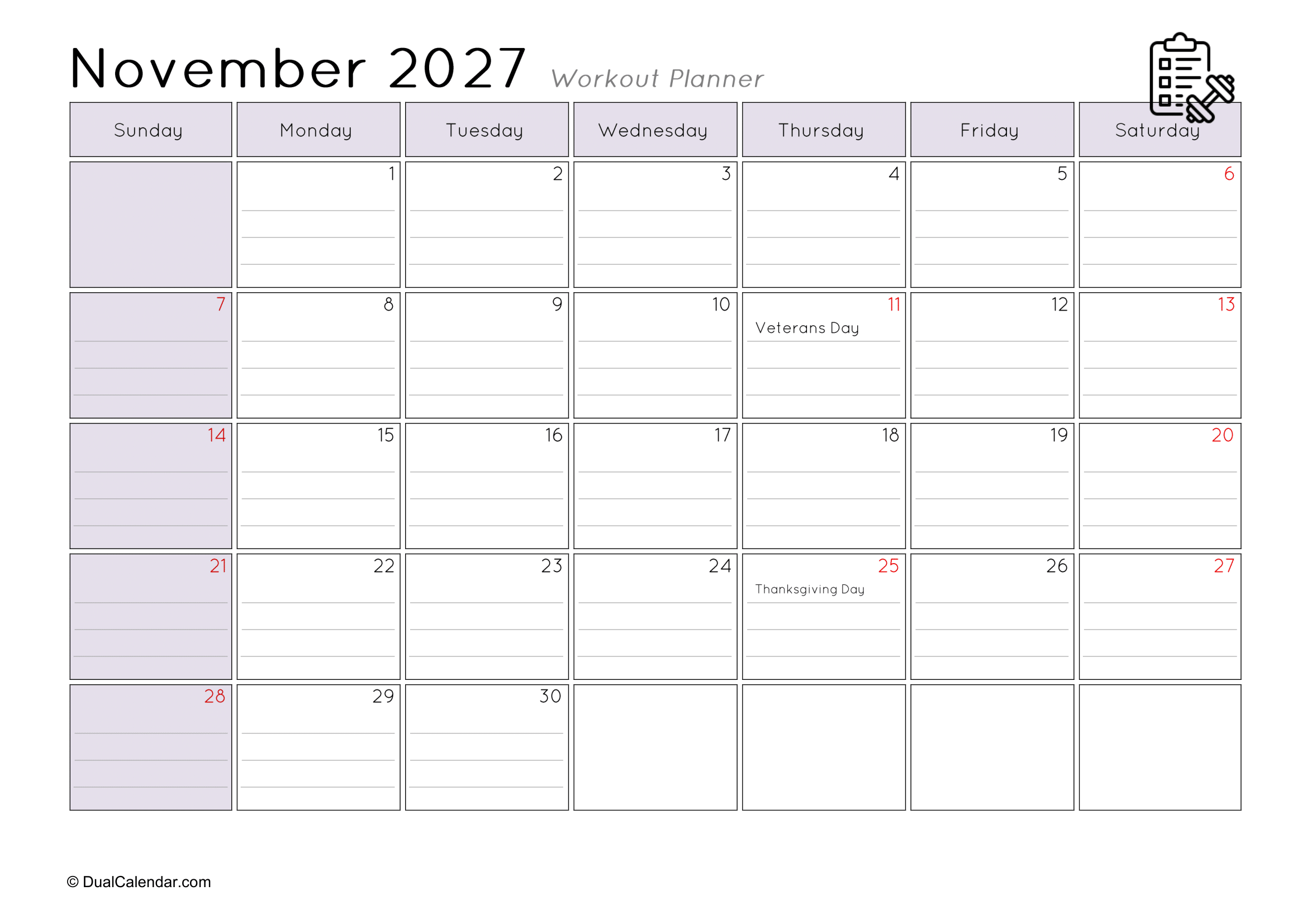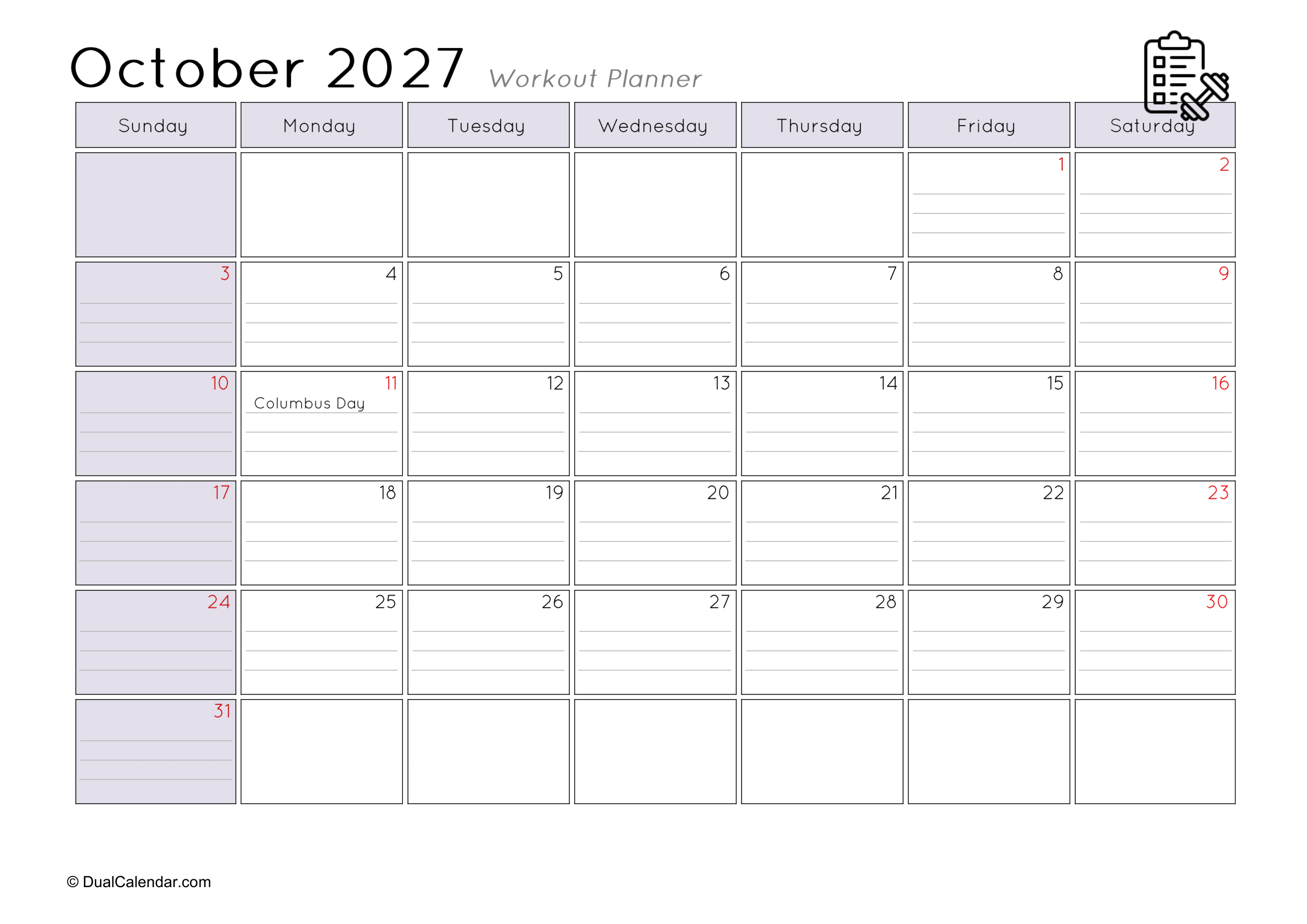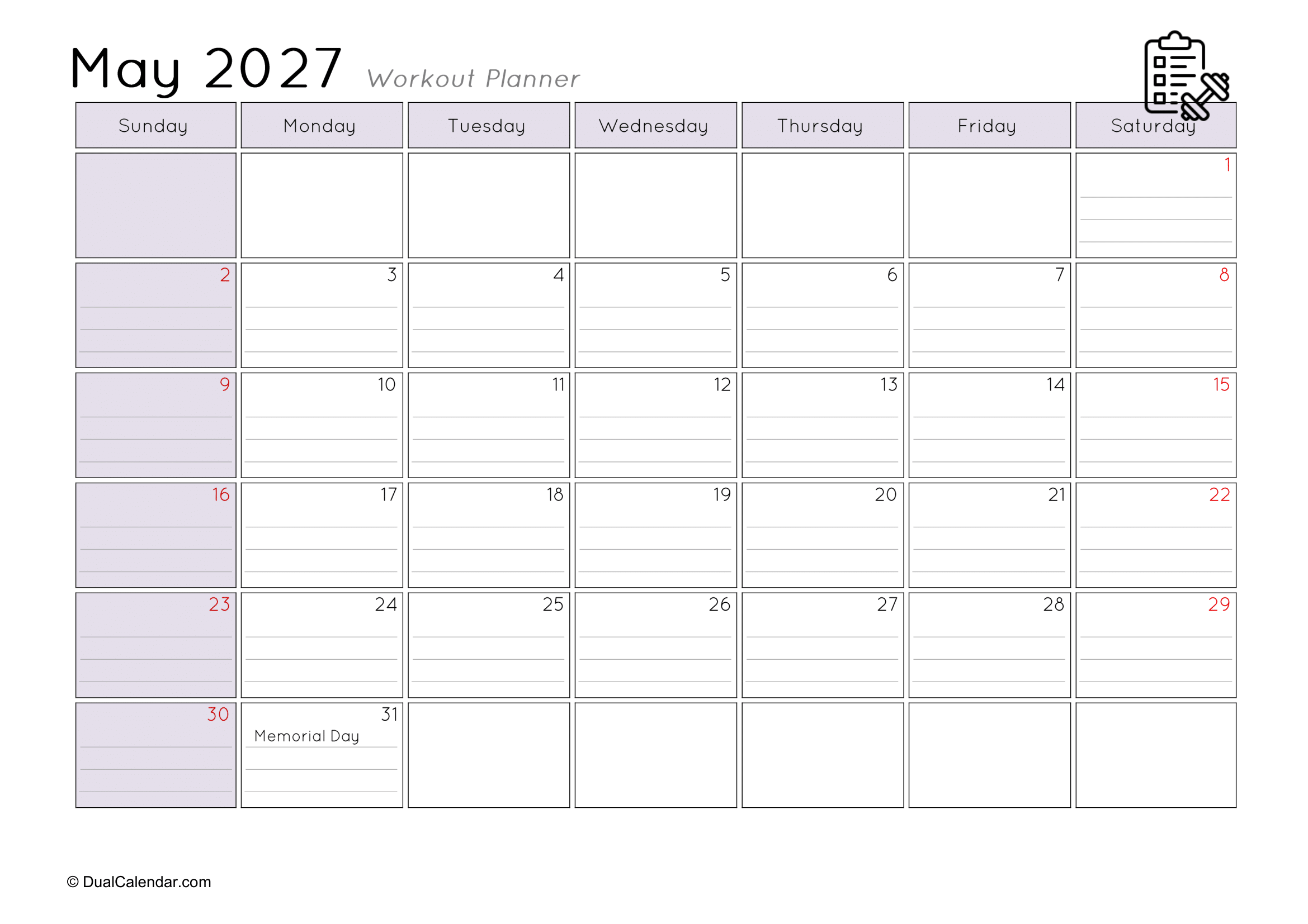 I found it very difficult to keep track of the workouts I did at the gym each day, such as remembering that today is Monday and I worked on chest exercises.The main challenge was where to note everything down. I even searched on Google for a monthly workout planner, but couldn’t find anything suitable template. After that, I decided to create my own templates so others wouldn’t face the same problem. Here, I have designed monthly workout planners for the year 2027, making it easy to track gym schedules, yoga sessions, jogging, or any other fitness activities.