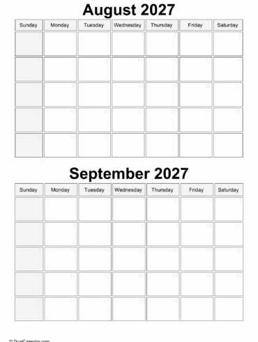 Dual-month July and August 2027 template offers a clear, side-by-side layout that helps you plan across weeks without switching pages. This continuous view makes it easier to track timelines, recurring tasks, and long-term commitments at a glance. Designed for efficiency, it supports better management for work, school, or personal use while keeping important dates visible. …
