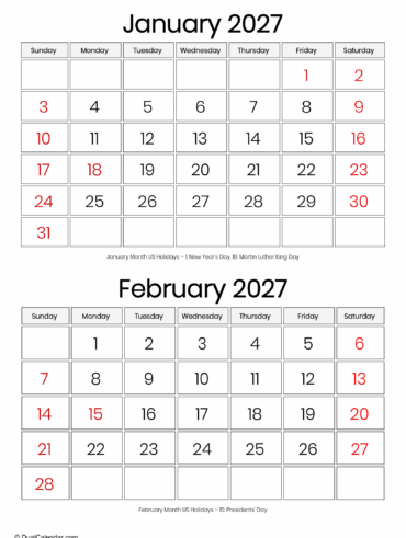 January and February 2027 Calendar