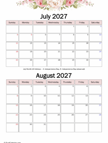 July and August 2027 Calendar
