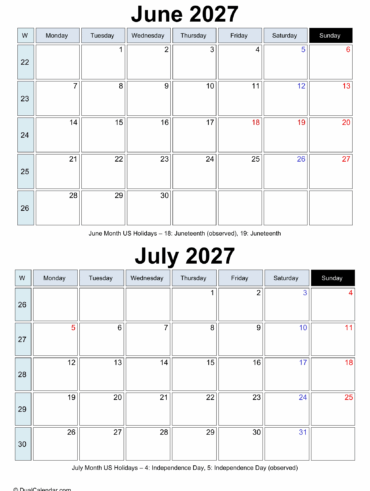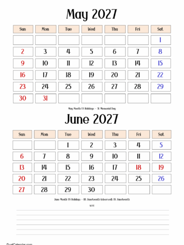 Best for planning the start of summer in the US, this June and July 2027 beautiful Calendar is best to organize your memorial weekend trips, summer vacations and break assist you in track outdoor activity, festivals, events and travel plans as well as in balancing your work schedules. In one of the given calendar also …